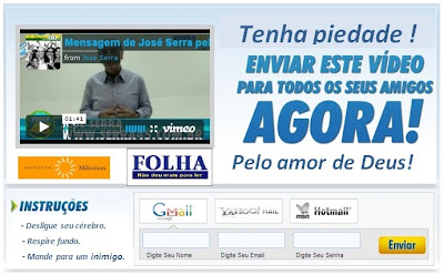 SÓ PODE SER CAMPANHA DOS BLOGS SUJOS PATROCINADOS PELO PT E PELO OURO DE PEQUIM, CARACAS, HAVANA E PYONG-YANG!!!