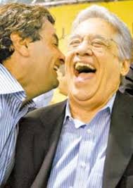 Pela alegria do FH-Gá na foto aí acima, o Aócio Never passou-lhe a mão na base enquanto murmurava algum galanteio nella orecchia do octagenário. Ah, o amor é lindo…