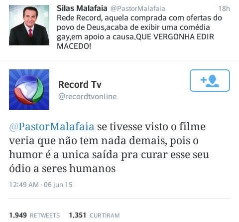“Não por outro motivo, a campanha contra um Homem como o Pastor Malafaia (acusado de forma vil de estar à procura de “uma rola”), ou como (*) o Deputado Feliciano.”