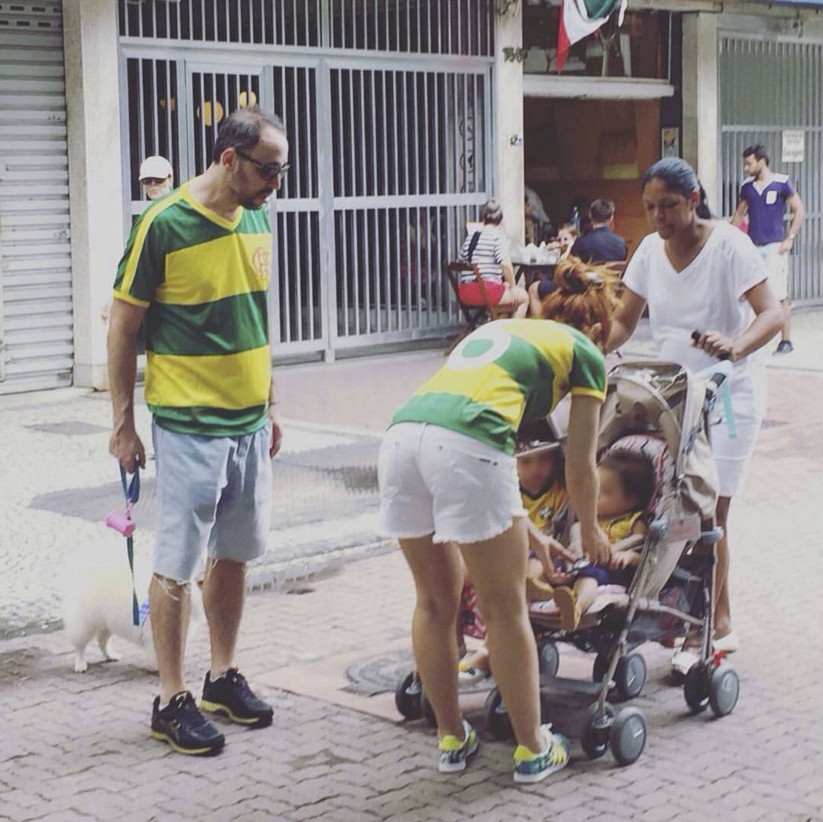 1. Vejam naquela foteenha do casal verd’amarelo, eles vão na frencte com seu cachorrinho-bibelôt, numa demosntração de afeto aos animaizinhos!