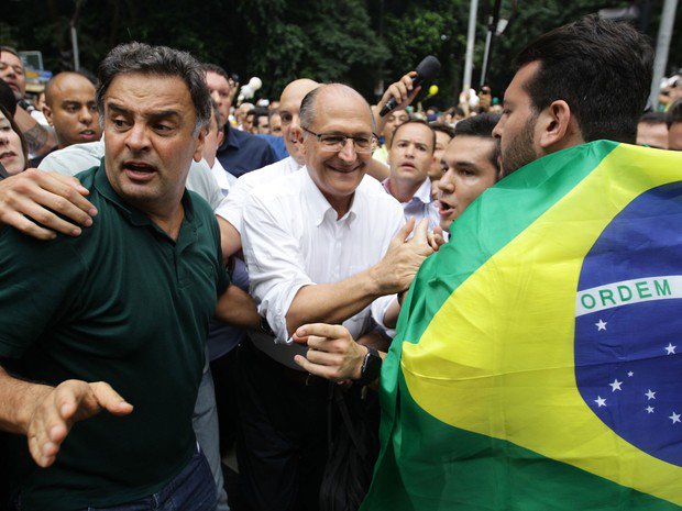 Aécio e Geraldo, momento em que estavam sendo ovacionados