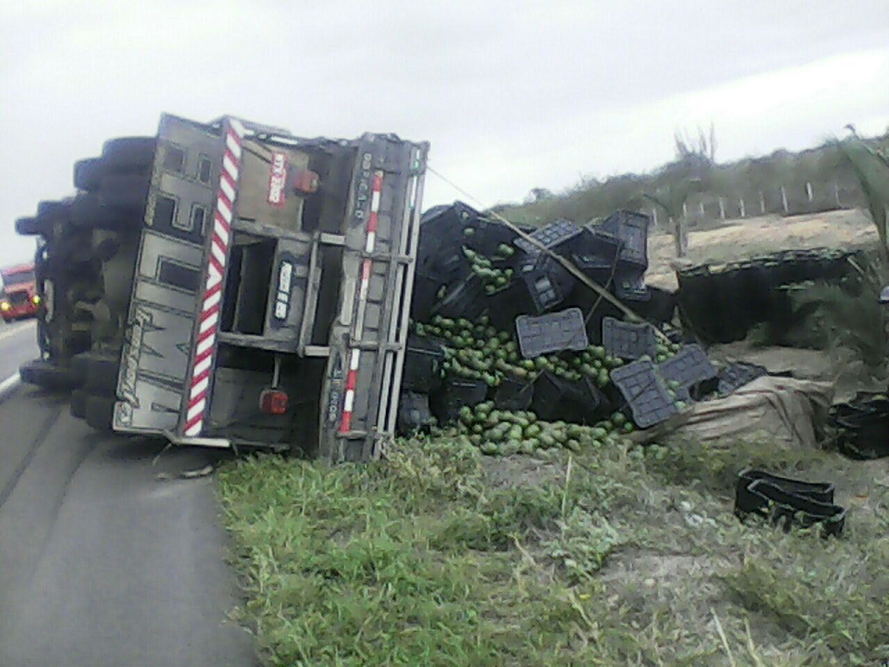 Hum caminhão de abacates que seguiha rumo a Argentina capotou